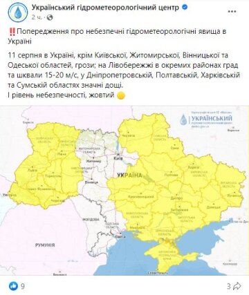 Погода в Україні 11 серпня. Фото: скрін Facebook