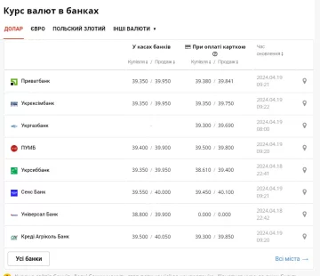 Валютні курси, що встановлені Національним банком України на сьогодні, 19 квітня, мають наступні показники: курс долара США зараз дорівнює 39,6037 гривень за 1 долар. Курс євро наразі складає 42,2789 гривень за 1 євро.