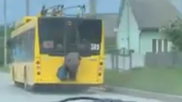 Позже в Telegram-канале типичная Украина к этому видео еще появилось фото, на котором бабушку снимают с троллейбуса. В сообществе с юмором подписано, что так поступают пенсионеры, когда их не пускают в салон, но они молоды душой и решаются на радикальные поступки.