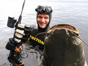 Для охотника, порой, важна не добыча или трофеи, а азарт и ощущение самой охоты. А рыбак и подводный охотник из города Днепр Александр Громадский сумел получить и то, и другое, и третье - он сумел поймать гигантского сома, весом в 51 килограмм. О редком трофее рассказывает портал Апостроф.