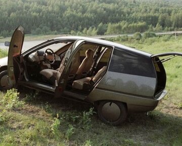 Кузов изготовили из легкого и прочного стеклопластика, ходовую часть выполнили на базе хетчбека ВАЗ-2108. Салон автомобиля сделали трансформируемым, сиденья разворачивались на 180 градусов.