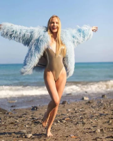 Недавно девушка опубликовала фотографию в откровенном купальнике и голубой шубе на побережье. Певица в очередной раз продемонстрировала поклонникам свою идеальную фигуру.
