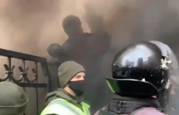 Кроме того, участники протестной акции жгут фаеры и бросают их, а также дымовые шашки на территорию суда.