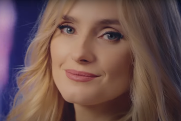Свої біляві локони Ірина розпустила, і вони розсипалися по її спині. За допомогою яскраво-рожевої помади вона виділила губи, а очі злегка підкреслила тушшю і тонкими стрілками. Обличчя співачки прикрашає чарівна, трохи грайлива, посмішка.