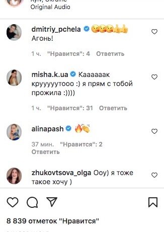 До слова, в коментарях залишила повідомлення для Наталії і її подруга і колега Ксенія Мішина. Артистка зазначила, що вона дуже пишається Денисенко і буквально прожила це все з ним, поки дивилася відео. Примітно, що Мішина теж пробувала таку практику з цвяхами. Хто знає, раптом саме вона і порадила це подрузі. У будь-якому випадку, судячи з емоцій актриси, їй дійсно сподобався такий незвичайний досвід.