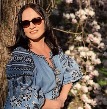 София Ротару позирует на фоне невероятных южных пейзажей в легком розовом платье и белых кроссовках.