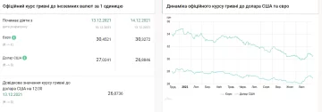 Те ж саме стосується і курсу євро. На 14 грудня регулятор встановив курс 30,32 грн, тоді як 13 грудня він був 30,45 грн. Зниження за один банківський день склало 12 копійок.